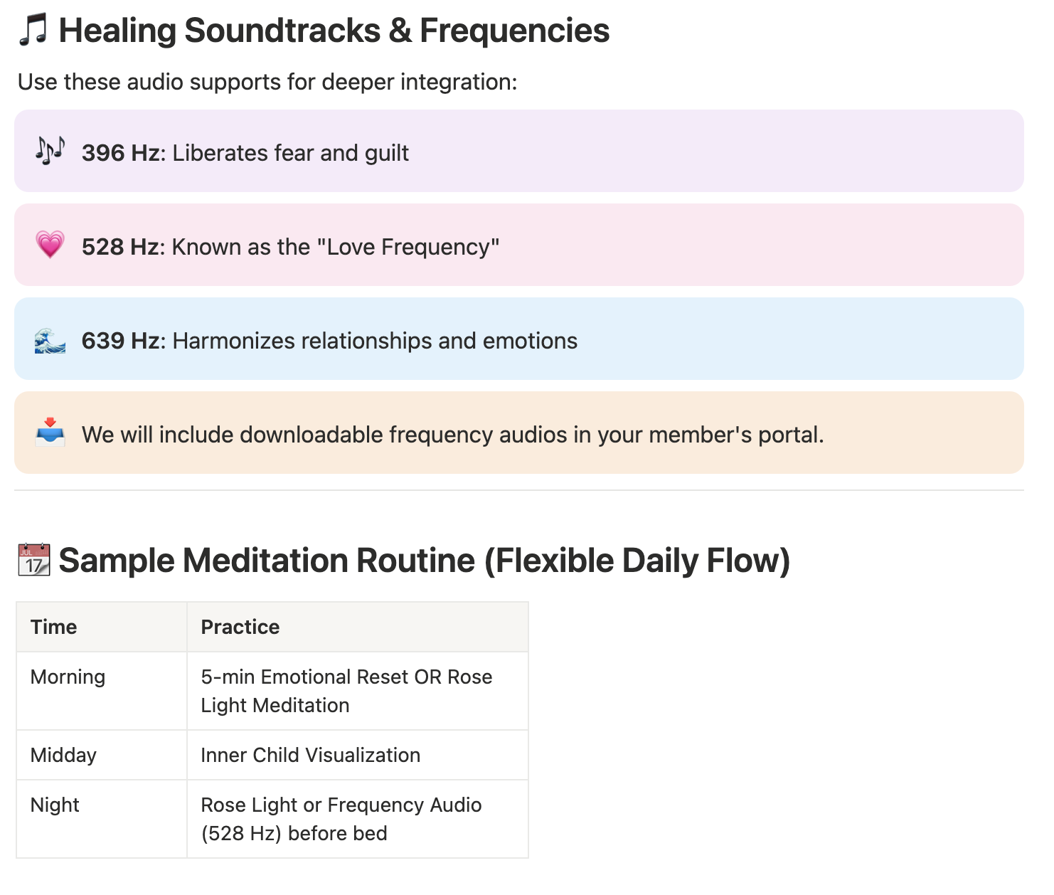 ✅ 13 Ready-to-Use Templates ($197 value): Ritual trackers, scripting templates, shadow work journals, emotional regulation trackers, vision board guides, and guided ceremony scripts